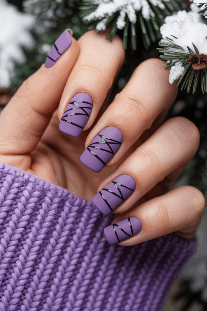 Metallic violet nails bring a bold, eye-catching shine that feels perfect for winter. Silver accents add contrast and enhance the reflective finish.