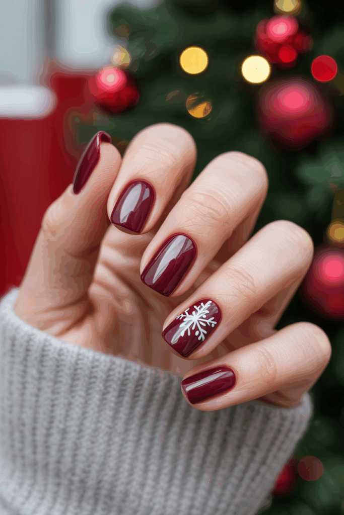 This shade looks gorgeous in matte finishes and pairs well with minimalist white designs — think small dots, lines, or snow-inspired accents. It’s perfect if you want your nails to feel festive in a subtle way.