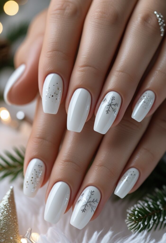 Snow-white nails are crisp, clean, and incredibly versatile. They evoke the look of fresh snowfall and act as the perfect canvas for holiday nail art.