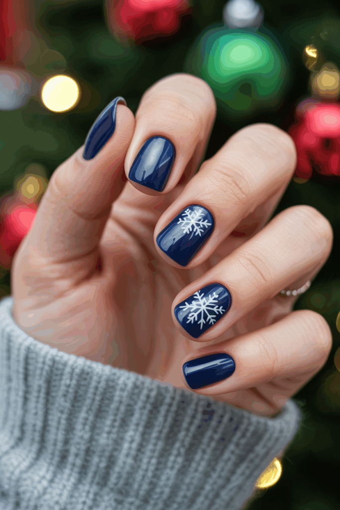 Navy blue is an unexpected but stunning choice for holiday nails. This deep, moody shade pairs beautifully with silver or gold for a chic winter look.