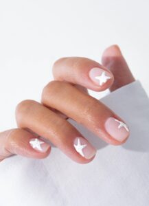 Minimalists will love these matte white, clear-based nails topped with delicate 3D starfish. Simple yet adorable, they give instant coastal vibes without overwhelming your look.